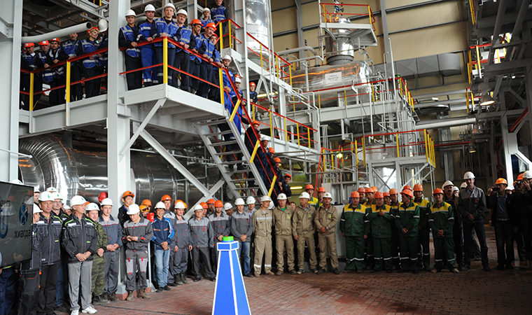 back to contentsConstruction on Khiagda’s main site was started in 2010 as part of ARMZ investment program. In the summer of 2014, the main production unit, storage facilities for chemicals and finished products, the transformer substation, compressors and the fire station were launched in test mode. A commission permit was issued in May 2015, and the work began to prepare the commissioning of power and water supply networks and sodium nitrite production and storage facilities.