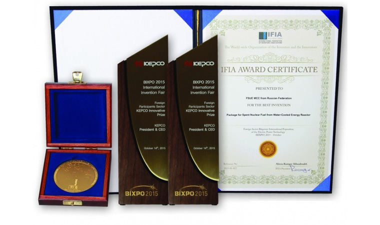 The inventions presented by MCP won BIXPO 2015 awards. The four-slot cask for VVER-1000 spent nuclear fuel was also awarded with a special prize by the International Federation of Inventors’ Association.