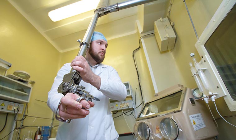 back to contentsAttempts at developing betavoltaic batteries, a new generation power source, have been made for more than 50 years, but as yet with no commercial success. Based on Nickel-63, a clean energy source, the battery emits only beta particles and no harmful gamma radiation. Having a half-life of 100 years, this isotope does not occur in nature and can be produced only artificially. The production process includes two enrichment stages, first obtaining Ni-62 by centrifugation, then enrichment and separation of Ni-63. Some countries, for example the USA, possess technologies yielding low-enriched nickel with 20% of Ni-63, which is insufficient to produce a beta cell. Since Rosatom has reached 80% enrichment, it is time now to apply this technology.