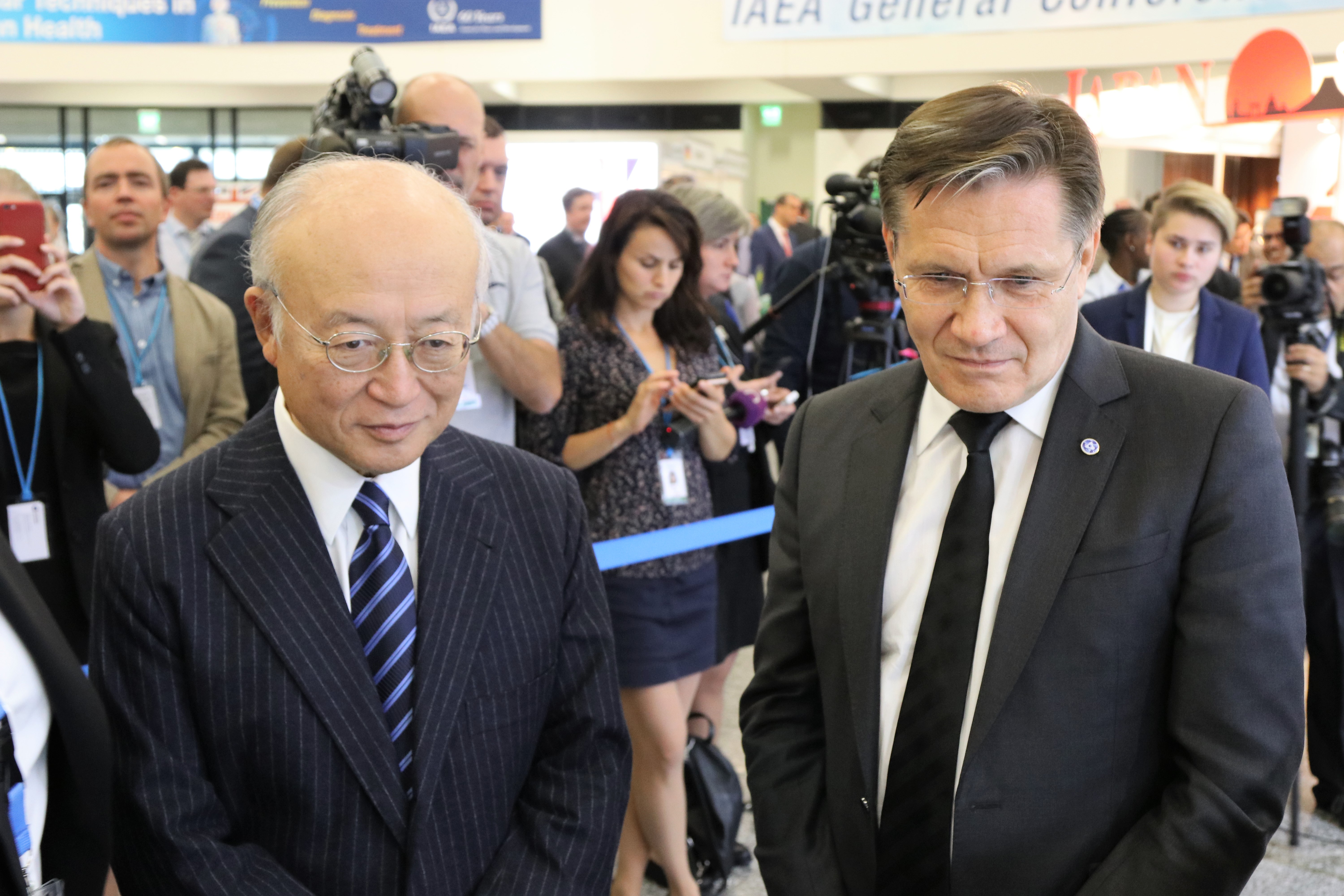 The International Atomic Energy Agency intends to strengthen its ties with Russia in the field of nuclear energy, said IAEA Director General Yukiya Amano when visiting Rosatom’s exhibition stand in the Vienna International Centre. According to Mr. Amano, Russia is a very important partner of the IAEA, an active member of the nuclear community, and a recognized leader in fast neutron technologies. “The IAEA will continue its partnership with Russia by expanding it into new fields of nuclear energy,” said Yukiya Amano after visiting Rosatom’s exhibition where Russia presented its most innovative solutions within the framework of the 61st IAEA General Conference.