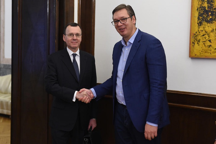 back to contentsDeputy Director General of Rosatom Nikolai Spasskiy informed President of the Republic of Serbia Aleksandar Vučić about the work underway aimed at launching cooperation between the two countries in the field of peaceful use of atomic energy. The meeting took place in Belgrade on October 23. Russian Ambassador to Serbia Aleksandr Chepurin and Serbian Minister in charge of Innovation and Technological Development Nenad Popovic also attended the meeting.