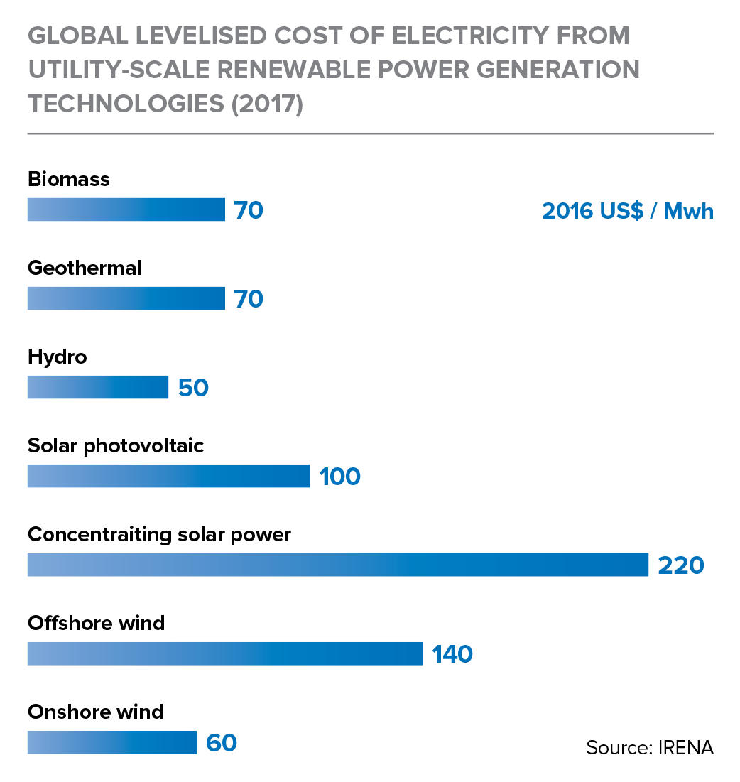 LCOE does not account for government subsidies, but this is a factor that should be definitely taken into consideration. The Status Review of Renewable Support Schemes in Europe for 2016 and 2017 published every two years by the Council of European Energy Regulators (CEER) says, “The weighted average support for RES, on top of the wholesale price, decreased from €110,22/MWh5 in 2015 to an average of €96,29/MWh across 25 countries6 for 2017.This is a decrease of 12,6%. In 2017, the weighted average support ranged from a minimum of €12,87/MWh (in Norway) to a maximum of €198,29/MWh (in the Czech Republic).” All that is left to do is to compare these data with LCOE.