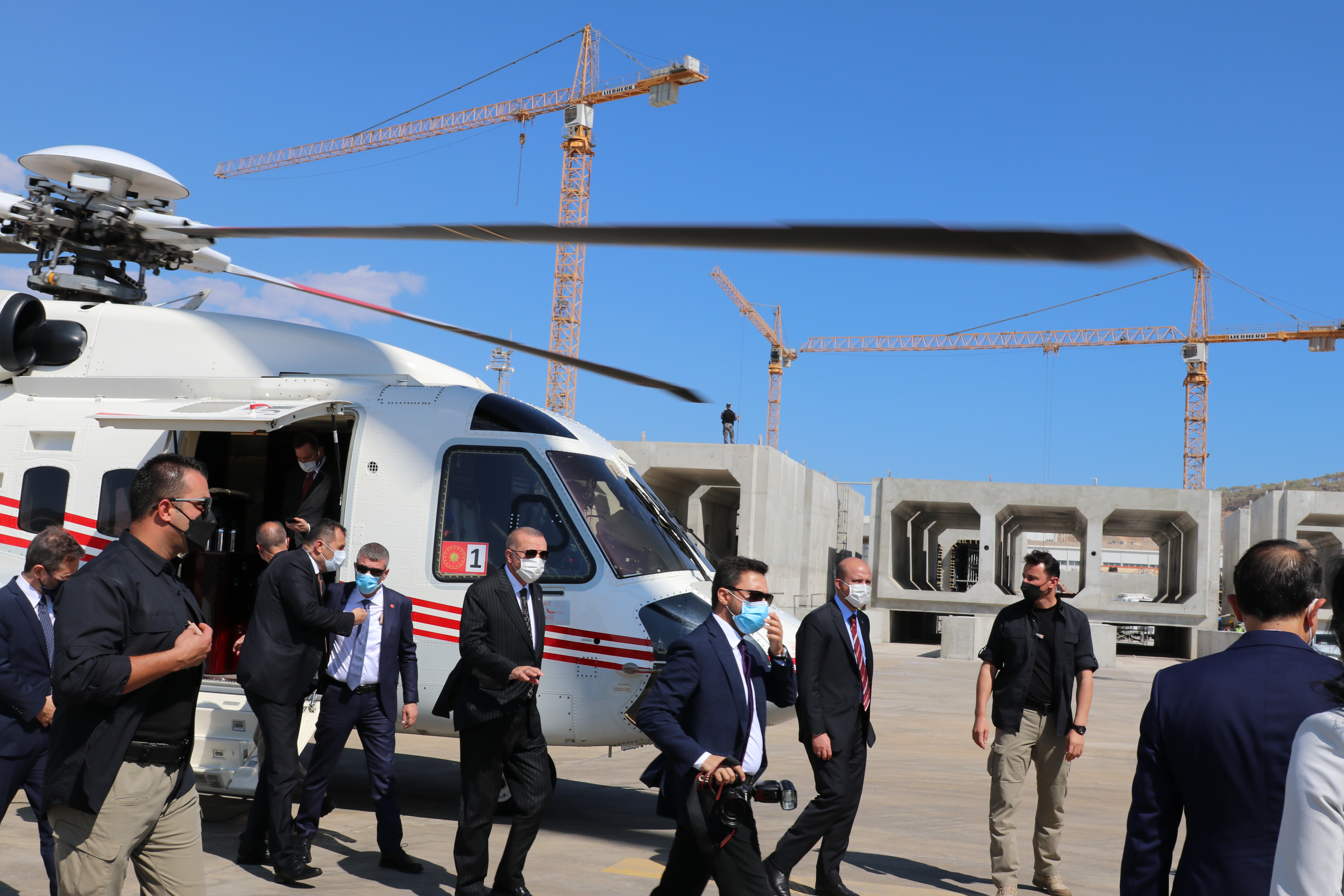 Recep Tayyip Erdogan arrived at the nuclear construction site accompanied by Vice President Fuat Oktay, Minister of Energy and Natural Resources Fatih Dönmez, Minister of Finance and Treasury Lütfi Elvan, and Minister of Transport and Infrastructure Adil Karaismailoğlu. The delegation was joined by Ambassador of Russia to Turkey Alexey Yerkhov, Rosatom Director General Alexey Likhachev, and AKKUYU NUCLEAR CEO Anastasia Zoteeva.