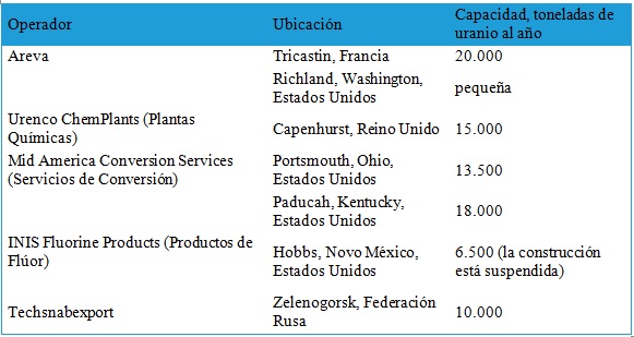 La desconversión se lleva a cabo en empresas del Reino Unido, Estados Unidos y Francia (véase «Plantas de desfluorización de uranio»).