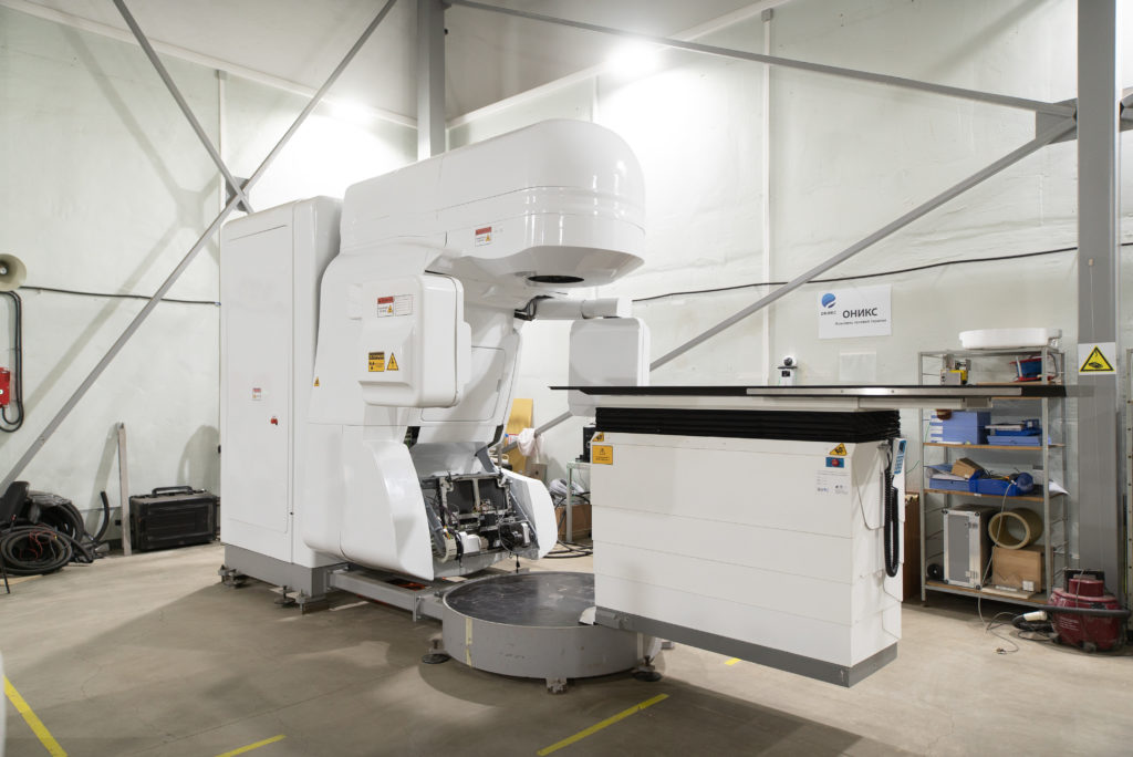 A Rusatom Healthcare planeja obter um certificado de registro para o complexo Onyx este ano. Este é um complexo para radioterapia de longo alcance. A energia de seu acelerador varia de 2,5 a 6 MeV. O tomógrafo, que também faz parte do complexo, utiliza uma energia menor para o diagnóstico e uma maior para o tratamento. A precisão é fundamental neste tipo de dispositivo, portanto o Onyx é projetado para que o médico possa facilmente mudar a posição da mesa e do tubo acelerador a fim de apontar o feixe com a maior precisão possível para um local doente. Se um tumor no pulmão deve ser tratado, um sistema de sincronização da respiração é conectado. Isto para o acelerador se, por exemplo, o paciente tossir ou respirar fundo. Tal função não está disponível em todos os complexos de outros fabricantes. O Onyx também está equipado com um colimador, um dispositivo feito de 120 lâminas de tungstênio de 0,5 a 1 cm de largura. A tarefa deles é configurar o feixe precisamente de acordo com a geometria da neoplasia.