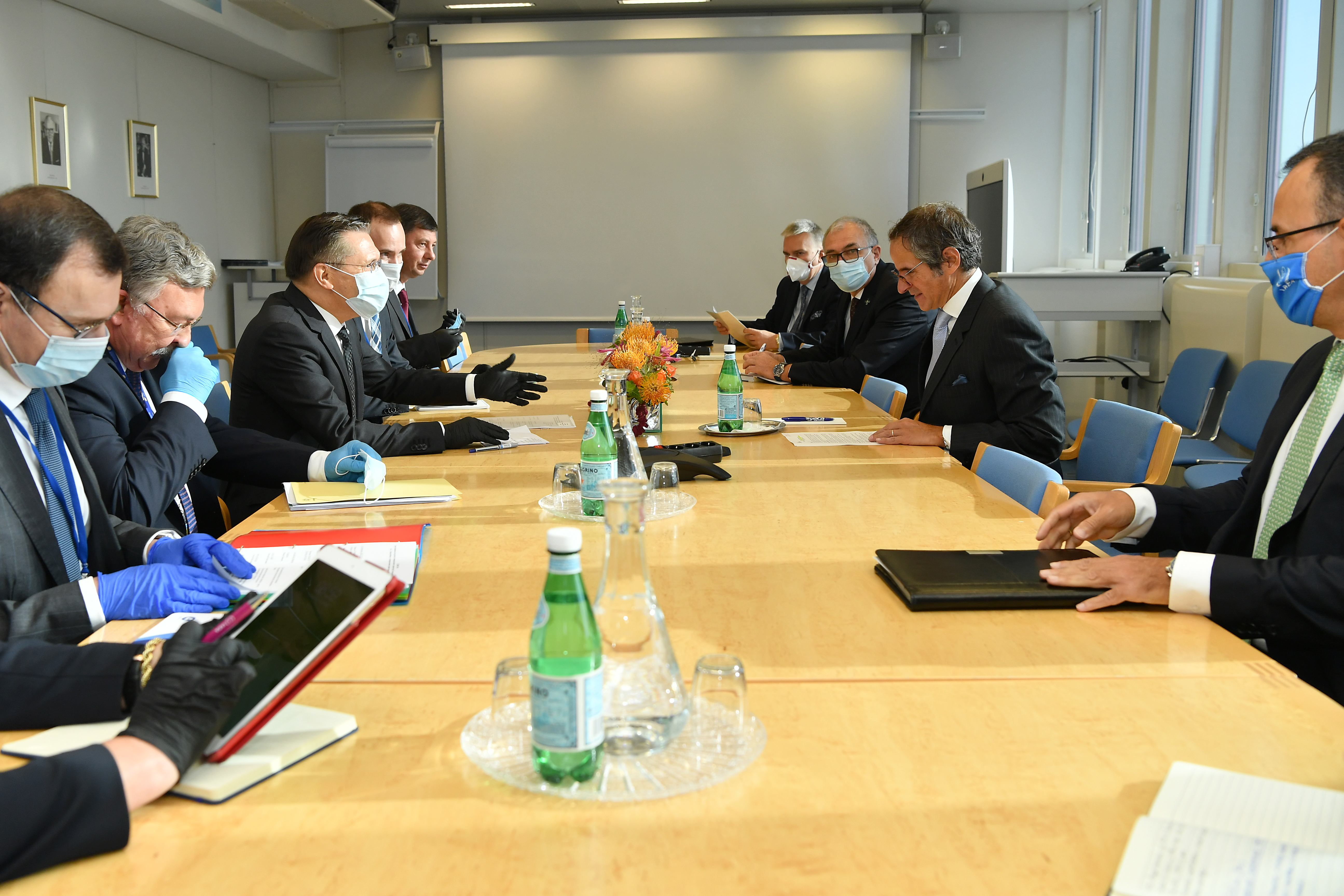 Rafael Grossi ve Rosatom Genel Müdürü Alexey Likhachev etkinliğin oturum aralarında bir görüşme yaptı.