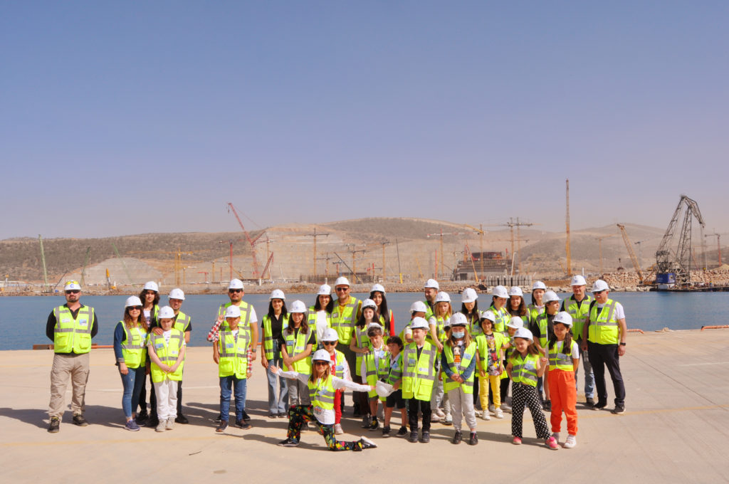 Çocuklara güvenlik konusunda bilgilendirilme yapılmasının ardından kask ve reflektörlü yelekler verildi. Çocuklar, ebeveynleri ve rehberleri (Akkuyu proje yöneticileri) eşliğinde santrali gezdiler. Farklı ülkelerden nükleer santral için ekipman taşıyan gemilerin geldiği Doğu Kargo Terminali’ni ziyaret eden çocuklar dünyanın en güçlü Liebherr LR 13000 paletli vincini görme ve vinç operatörünün koltuğuna oturma fırsatı yakaladılar. İnşaat görevlileri çocuklara ayrıca damperli kamyonlar, ekskavatörler, forkliftler gibi inşaat ekipmanlarının nasıl çalıştırıldığını da gösterdi.