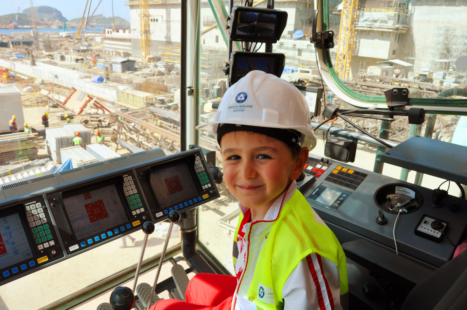 Çocuklara güvenlik konusunda bilgilendirilme yapılmasının ardından kask ve reflektörlü yelekler verildi. Çocuklar, ebeveynleri ve rehberleri (Akkuyu proje yöneticileri) eşliğinde santrali gezdiler. Farklı ülkelerden nükleer santral için ekipman taşıyan gemilerin geldiği Doğu Kargo Terminali’ni ziyaret eden çocuklar dünyanın en güçlü Liebherr LR 13000 paletli vincini görme ve vinç operatörünün koltuğuna oturma fırsatı yakaladılar. İnşaat görevlileri çocuklara ayrıca damperli kamyonlar, ekskavatörler, forkliftler gibi inşaat ekipmanlarının nasıl çalıştırıldığını da gösterdi.